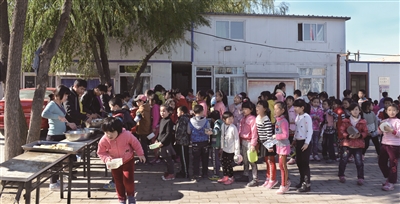 每天早上7点半,学校看门大叔会准时拿起放在窗台上的一个破锁,敲击屋檐下的铃铛。伴随着“铛……铛……铛……”的铃声,孩子们便开始了一天的学习生活。这样的铃铛很少见,尤其在北京这个大都市里。尽管铃铛和设施有些简陋,但这里却有一群怀有爱心的老师在困境中坚守着孩子们的上学梦。