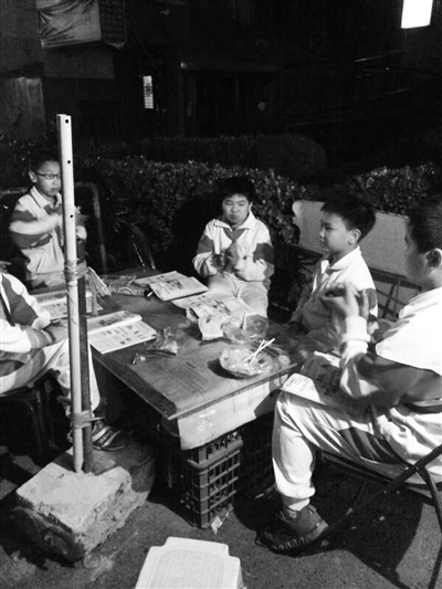 面对这群放学后围坐在街边摊一边吃凉面一边玩游戏,不愿意归家的小学生,我们或许有种悲怆的感觉,真想为他们呐喊——能否让孩子们歇一会儿?