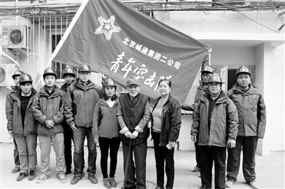 在北京城建二公司第七项目经理部的会议室里,摆着一张几名项目部青年职工与一位老爷爷、一位老奶奶在青年突击队旗下的合影照。这是怎么回事呢?这两位老人又是谁呢?
