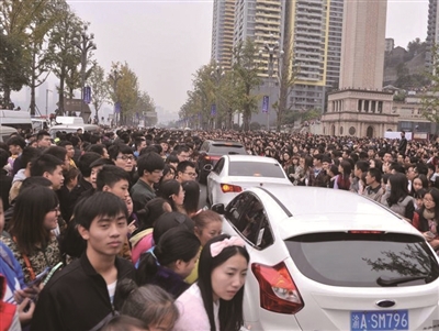 11月20日,重庆上万粉丝在南滨路等待《奔跑吧兄弟》节目的录制。粉丝们为了有与自己喜欢的明星合影机会,每当有过往车辆都会被他们包围检查是否有自己喜欢的明星。据执勤民警介绍,因聚集市民众多,导致整个南滨路交通水泄不通,为了市民人身安全,最后临时取消了该节目录制。