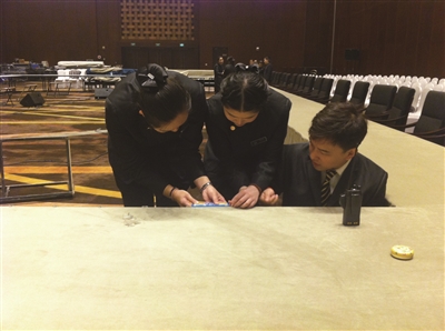 国家会议中心会议协调部副经理尹媛媛在APEC期间主要负责与会务组的沟通,确认大会每个场次的会议需求,把所确定的信息整理出来,再发给企业的相关部门,确保每场会议、每顿餐及提供的各项服务准时、准确、顺利圆满。除此之外,还要负责协调进撤场工作及保障单位的作业顺序等。