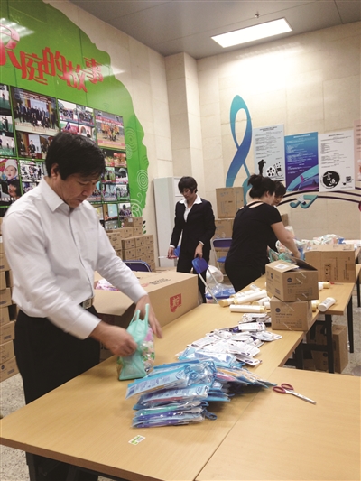 北辰公寓经营管理分公司在10月26日开始接待第一批APEC会议工作人员入住,到11月13日最后一名离店,长达14天。分公司工会主席张树来对记者说:“我们这里入住的是特警和交通保障组的工作人员。他们入住最早,离店最完。所以,员工也过了十一节,就进入临阵状态。”柳耀中说:“这时,员工停休。为使员工有一个良好的精神面貌,工会将经过精心挑选的慰问品及时送到每一位员工的手中。慰问品本身的价值并不高,承载着的是工会的一片真心,让员工深刻感受到工会的温暖。”国家会议中心工会主席赵坚对记者说:“我们这里有1500多名员工。为了不给繁忙的各科室再添工作量。我们在发放1500多份,每份10件套的慰问品时,由3名工会的年轻女干事在两天内分装完毕。”一位女干事向记者透露,赵主席儿子也在国家会议中心工作。他也利用休息时间帮我们分装。真是上阵父子兵。五洲·会议中心工会也发放了800多套5件装慰问品。