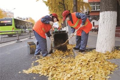 “APEC会议期间,正是落叶期,树叶是刮风落,不刮风也落。大家都争着看京城黄叶飘落的美景,可在我们这儿黄叶成了我们最大的烦恼。”北京市怀柔区环境卫生服务中心(以下简称怀柔环卫中心)清洁队总队长宋立军一语道出了面临的困难。怀柔环卫中心清洁队主要负责的范崎路的清洁工作,面对不时掉落的树叶,职工们只能挥舞起自己的扫帚,不停的清扫。“我们主要采取机车清扫为主,人工清扫为辅,机车不停的循环往复,人工分段进行保洁。”