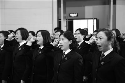 本报讯(记者 李一然)“我是中华人民共和国法官,我宣誓 :忠于祖国,忠于人民,忠于宪法和法律,忠实履行法官职责, 恪守法官职业道德,遵守法官行为规范,公正司法,廉洁司法,为民司法,为维护社会公平正义而奋斗!”