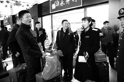 北京站充分利用电子显示屏横幅、彩旗等显示“欢送老兵退役”等宣传词,加强对老兵候车室(区)的广播,提前录制有关专题及宣传词,适时播放军旅歌曲和音乐,形成浓重热烈的拥军氛围。此外,客运车间还成立了老兵服务小分队,开展为老兵服务送温暖活动。
