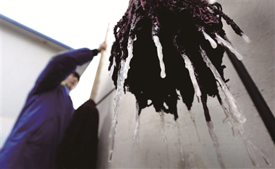 墩布池边,售票员小彭用力地洗着墩布。跑了一圈儿车回来,洗净挂在室外晾着的墩布竟然已经冻成冰挂。不过在她看来这很平常:“每年冬天都这样儿。”