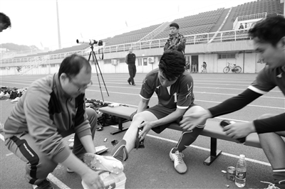 药箱是公司工会专门为足球队准备的。打开药箱,这里面不仅有冷却、止血的喷雾,绷带、创可贴、强效止血药、急救药,而这些药品的购置都是专门负责足球队的工会干事小郭,通过与队员的交流和观察而逐步准备齐全的。再看看赛场上的球员,服装、护具、球鞋,各种训练用具一应俱全,在场外,饮水、药品,各种物资保障一同跟上,工会还为球队聘请了专业教练进行指导。