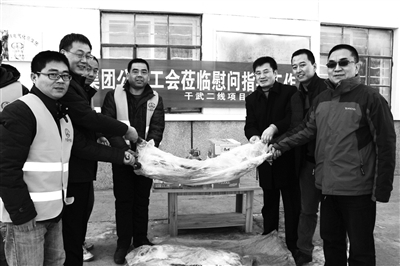 “谢谢工会的关怀,谢谢领导的关心!”接过送来的猪肉、羊肉、水果、牛奶等慰问品,职工感激地说道。日前,中铁电气化局集团公司工会副主席梁立刚一行到西格二线关角隧道、西宁枢纽、干武线、兰新线甘青段,给顶风冒雪奋战在青藏高原、大漠戈壁上的干部职工送去温暖。每到一地,梁立刚首先代表集团公司党政工团领导向大家表示亲切问候,并实地查看群安员履职尽责发挥作用及工程项目精细化管理宣贯情况,与一线职工进行了座谈交流。