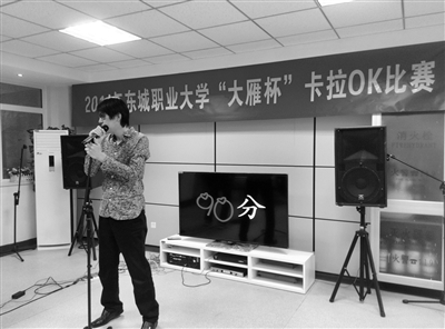 东城区职业大学工会昨天举办“大雁杯”第二届教师卡拉OK比赛,与三尺讲台上传道授业的威严样子不同,昨天的参赛教师非常放得开,张颀老师还带着大家一起大跳“花朵舞”,笑翻全场。