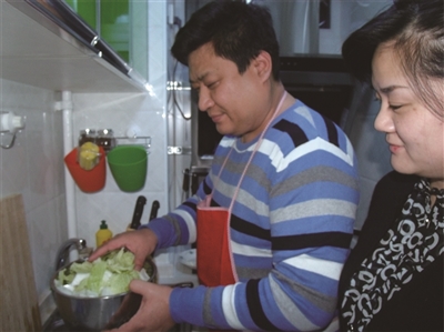 张立佳说:“我们成家后,由于我的工作单位比较远,回到家也晚。而他的单位比较近,只有十几分钟的路程,所以他回家早,每天的做饭就是他的事情了。我们在我父母家住的时候,他经常下厨房帮助父母做饭。他做的饭菜水平还挺高,味道也不错。现在,我们自己过日子了,家务的事情基本全落在了他的肩上了。”记者闻了闻李杰炖的牛肉,味道挺香,色泽红润,够水平。到厨房看看,白菜已经洗好了。李杰说:“我准备做酸辣白菜。”