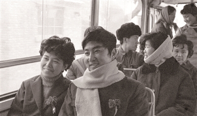 1981年12月27日,在北京的一辆公共汽车上,新郎李长乐(北京长空机械厂司机)接新娘吴树润(北京皮件厂司机)换乘三次公共汽车到李长乐家举行婚礼。
