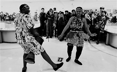 昨天,在菜百的“南非钻石文化”展示区,一对南非舞者为向市民推广南非文化,表演了充满野性之美的南非风情舞蹈。当天,菜百公司独家推出了“南非风情”系列钻饰展品。该钻石系列展品以南非大陆文化为背景,将猎豹优雅的形体融合于钻石造型中。