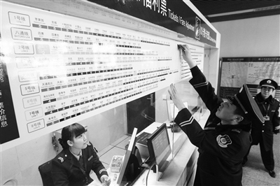 昨天上午,在西直门站D口,工作人员正将一张横版的票价新图表张贴到售票室的窗口上。表上是全路网的地铁线上的各站,每个车站名称下方显示的是西直门站到各站的价格。西直门所属地铁运三分公司相关负责人介绍,地铁总公司对于张贴有相关规定,每个站都会在比较显眼的位置张贴。