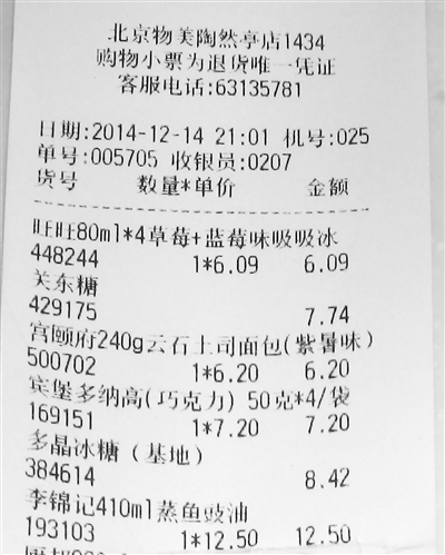 接着,记者通过114查号台找到物美超市88258615的电话号码,通话后对方表示是物美总部财务,一位女士给了记者另外一个电话号码。拨通后一位姓陆的先生说,这是物美公司内部的举报电话,一般是内部使用。对于记者反映的情况,陆先生说他会向公司负责这方面的部门进行反映,让记者留下电话,问清顾客有什么要求。