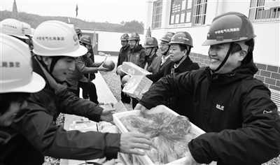 本报讯(记者 余翠平)“来了!来了!”15日,在京福客专安徽绩溪北变电所,中铁电气化局集团工会为京福客专(安徽段)的施工人员送来了猪肉、油、蛋、蔬菜、水果、牛奶等生活必需品和文体用品,一共价值5万元。看到慰问品送来,施工项目部的工人兴奋地说:“我们一定不辜负领导的期望,为建设精品客专贡献自己的力量!”