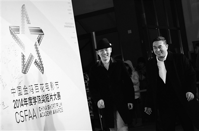 12月20日,在北京电影学院,著名演员黄志忠、张嘉译步入红地毯参加“学院奖”颁奖仪式。当日“中国金鸡百花电影节2014年度学院奖短片大赛”颁奖仪式在京举行。