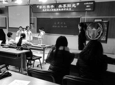 12月23日,东城区革新里小学举办家长开放日,三四百名家长应邀走进校园,观察孩子的课堂表现。在戏剧课上,五年级吴怡心的妈妈特意放下手中工作赶来,看到女儿活灵活现的表演,她开心地拿着手机一直拍摄,对学校的教学方式非常赞赏。 本报记者 任洁 摄影报道