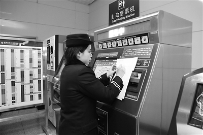 刘启铭是15号线关庄站区员工,他的主要工作就是在自动售票机上购买不同面额的单程票。有一次测试,刘启铭和同事马赛要购买800张不同面额的票。“我们一次次地把纸币塞进自动售票机里,一遍遍取出测试票和找零。但是开始就不太顺利,机器总是时不时的把刚吞进去的票款无情地吐出来。”刘启铭说。