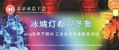 工会会员登陆12351职工服务网(www.bjzgh12351.org)从“会员活动参与入口”登陆进入活动页面,预订“2015冰城灯都迎冬奥”主题活动门票(需提供本人姓名、北京银行京卡·互助服务卡卡号、本人手机号码),活动周期内每卡限订一次,一次可预订3张门票,共40000张,先到先得,订完为止。