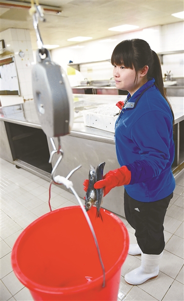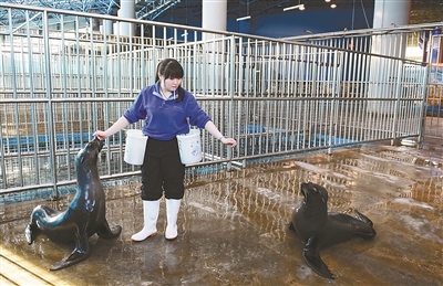 “大家都觉得,在海洋馆工作,每天就是跟动物一起玩,可实际上也有很多辛苦的地方。”李沛莹介绍说,“我们早晨7点半上班,比较早。我家住南三环,坐地铁一个半小时才能到,所以每天起床都很早。而且如果自己带的动物生病了,或者馆里的动物要生宝宝,我们都会自觉加班,下班又会很晚。父母开始都很不理解,我怎么那么忙。其实,在家里,我们也都是衣来伸手饭来张口,但在这里,我们每天要照顾这些动物,给它们准备食物、刷食物桶、清扫笼舍等等,而且我们的工作性质是越是节假日越忙,根本没时间陪家人。”