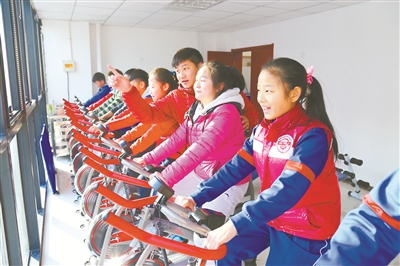 门头沟区教委近日为全区38所中小学校配备了室内健身设备,孩子们有了属于自己的健身房。据悉,该批设备有动感单车、椭圆机、腹肌板等400余套器材,同时还配备了室内空气净化设施,解决了室内锻炼空气质量问题。该健身房由学校专人负责管理使用,平时作为学生体育锻炼场地器材的有效补充,当遇到冰雪、大风、雾霾等极端天气时,学生照样可以参加体育锻炼,保证了学生体育锻炼的连续性。