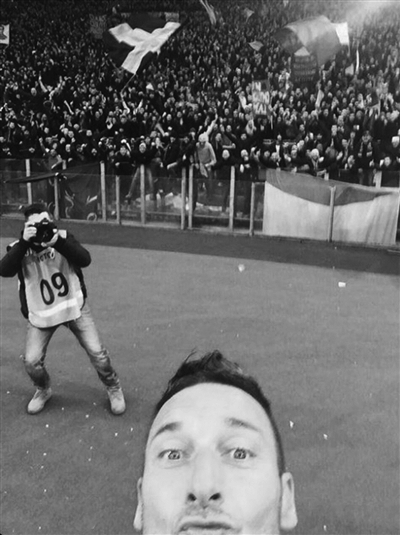 进球之后的托蒂也是兴奋异常,随后他甚至跑到了场边拿起了自己的手机,好像是在给自己的家人发着短信或是写下纪念这一刻的文字,他还特意在罗马球迷聚集的南看台玩起了庆祝自拍,这一幕也是让人忍俊不禁,大呼神奇。