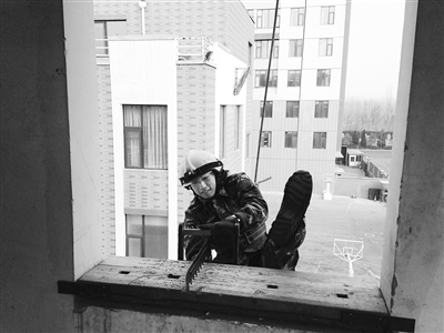 随后,贾砺加入到操场上正在训练的队伍中。当天训练的项目是挂钩梯爬楼,就是用一头带钩子的铁梯,腰上绑上安全带,从楼体外部爬上5层楼。“这主要是锻炼身体协调性、体能和胆量。”轮到贾砺时,他绑好安全带,踩着梯子噌噌爬到2层,然后再把铁梯提上来挂到3层的窗台上继续往上爬。当他站到5层的窗台上时,记者看了一下表,只花了24秒。