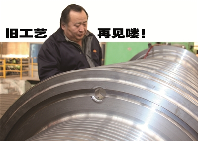李平指着这根主轴说:“这根主轴是30万千瓦超临界高中压转子,有两米多长。它这中间有几道槽。我们要用精车抢槽。以前的加工方法是粗勾后再精车,这样一转之后容易使铁屑划出道子,形成积压流,给下一道的装配工造成了麻烦,使他们装配起来很费劲。这个方法我们决定不再使用。通过与技术人员的研究,改变粗勾后再精车的旧方法,而用‘先靠、留出条量,再精车’的新工艺, 这样就解决了这个问题,虽然我们在加工时费了时间,但是给装配提供了方便,没有再出现了划伤。如果出现了划伤再加工可就费了大劲了。所以,我们不能把旧的加工方法带进2015年。”