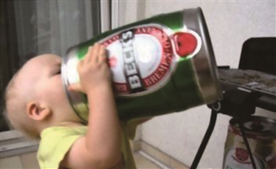 @为什么:宝贝,这可不是奶粉桶哦,喝多了是要付出代价的。是打算从小就要做男子汉吗?
