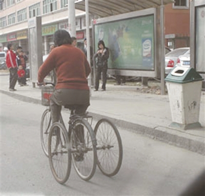 @小小:以前见过小孩子的玩具自行车带有保险轮,这下连成人骑的自行车也装上了保险轮,真是开眼界啊。