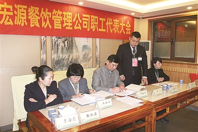 五是针对企业协商空间大、但形式化文本较多的特点,天润金百探索了“真协商”模式,通过工会与行政坐在谈判桌前的充分协商,达成了企业职工工资增长与企业效益挂钩、与党政领导考核结果挂钩的双挂钩原则,保证职工工资的增长;便宜坊集团将企业现行薪酬管理制度和考核办法与工资集体协商相结合,及时按照市餐饮行业协商标准调整工资系数,增加一线外埠职工福利,切实实现了“真协商”。