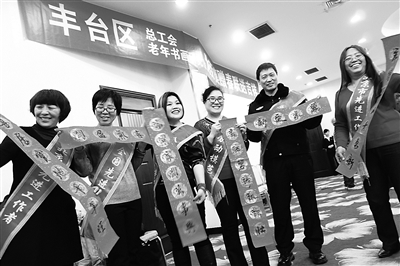 1月中旬,丰台区总工会组织丰台区老年书画研究会的艺术家们为劳模代表送上了对联和福字,以此种方式祝福劳模过一个祥和的春节。节前,丰台区总工会准备了对联和福字近1000份,这些对联福字将全部送给丰台区的300多名劳模。