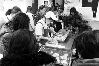 “租房子没法儿置办那么多工具,今天终于圆了烘焙梦。”职工小兰说。