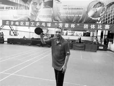 今年55岁的赵启明是丰台花乡总公司下属物资仓库的一名职工,从小就很喜欢打乒乓球。然而上班后,繁忙的工作、生活中的琐事让他很久都没再拿起乒乓球拍子。