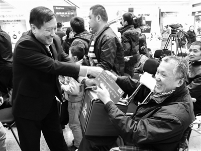 昨天,市残疾人福利基金会携手海信集团举办以“恭贺新春 圆梦助残”为主题的爱心活动,向北京市残疾人捐赠了价值1000万元的5000张“爱心圆梦助残卡”。 残疾朋友在2月1日—28日期间,到本市的大中、国美电器商城内购海信、科龙、容声旗下相关型号家用电器时,可享受500—2000元不同额度的爱心补贴。本报记者 邱勇 摄影报道
