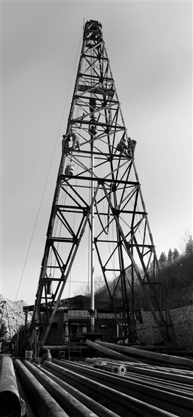 这时,记者注意到钻台就在山脚下,大山的岩石延伸到水厂门口,到这里上了一个很大的坡。“井的位置设在这里,地势高些可防止雨水侵入井场,避免泥浆浸泡。”李同功说:“不然的话,施工区还得填土垫高。你看,支撑钻机的承重部位已经做了密实处理,既平整又坚固。”