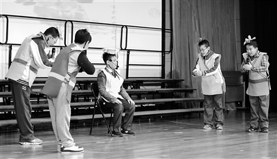 通过课本剧的形式,让学生在寓教于乐中学习,为丰台教育发展注入了新活力。昨天,北京第十八中学初一年级一场“校本课程才艺展示”赢得好评。节目以“负荆请罪”中的典故为剧情,以话剧形式进行表演,加深了学生对成语的理解。相关负责人介绍,这是语文教学的一种新尝试,今后有望在校园推广。本报记者 万玉藻 摄影报道