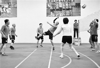 日前记者在朝阳法院由楼顶露台改成的室内职工健身场地内,与下班后的朝阳法院“老八路代表队”的队员,对阵年轻的法官,当院长李瑞翔到前排任主攻手时,工会主席张军伟便负责二传,院党组成员政治部主任毛力则在后场保护,几名平时工作中互相配合、支持的班子成员,此刻在球场上也配合默契,结果屡屡得分。一场下来,记者虽大汗淋漓,气喘吁吁,筋疲力尽,但却体会到了这项运动给人带来的快乐。