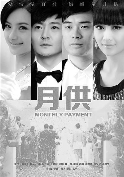 都市爱情剧《月供》由著名导演管虎监制,演员郭京飞、陈赫、张芷溪、王鸥、马丹旎等倾情出演。该剧从字面上讲很容易让人以为是讲述月供房子、车子的事,但实际并不限于此。剧中主角除了要月供房子、车子,更重要的是对亲情,爱情、婚姻等珍贵无形之物的用心供养。通过一对大龄剩男剩女经过闪婚、离婚到最终寻获婚姻真谛的故事,提出了“爱情是首付,婚姻是月供”的观点。即在自己首付了爱情之后,一定要用一份诚信的婚姻来不断月供。展示了当下适婚男女面临的闪婚、房贷、婚姻危机等诸多社会话题,全面而立体的展现了“情、钱、房”三大热点问题。