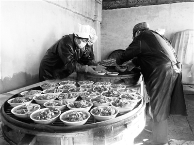 昨天,记者走进花乡看丹村,热气腾腾的蒸肉正出锅。快过年了,看丹村工会行动起来,为村民和职工准备了一份春节大礼包,大礼包里有酱豆腐肉、四喜丸子、豆泡、豆片、炸排叉等6道菜。“很多人上班忙,没时间准备年货,我们准备这6道菜,希望给村民和职工送上新春的祝福和关爱。”看丹村工会主席惠振敏说。本报记者 余翠平 摄影报道