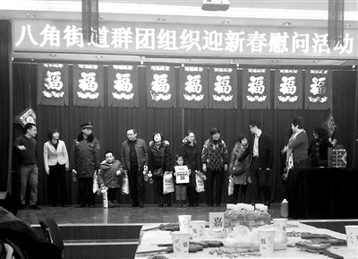 李金克:“腊八节”是大家团聚、祈求新年祝福的日子。在八角街道办事处的组织下,街道工会、团委、妇联等单位共同参与,组织了这场迎新年活动。街道群团组织是党联系群众的纽带,前不久,八角街道总工会荣获“2014年全国百家示范乡镇(街道)工会”称号,这也与群众的支持分不开。这次活动将社区职工组织在一起,由领导为大家送去慰问,彼此的感情增进了不少。
