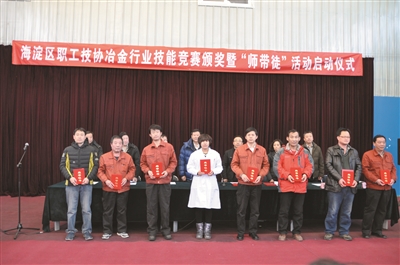 开展职工技术创新工作。开展技术比赛、技术练兵、才艺展示活动。总工会与区商联会联合举办了“第八届海淀商业服务业职业技能风采大赛”,有八万余名职工参与。继续做好2014年职工创新工作室评选工作,2014年共评选出10家职工创新工作室。