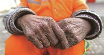 看看图片中这双手,这双被媒体称为城市美容师的环卫工人的手,再想想美容院里为美个指甲都能扔下几百元钱的手,这就是距离。一个可以说是职业,也可以说是贫富,更可以说是生存状态的距离。