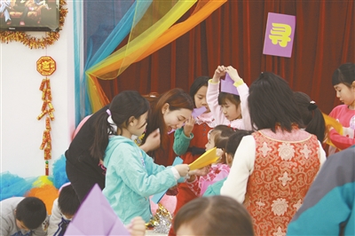 北京职工婚姻家庭建设协会秘书长夏华云介绍:“这些游戏项目都是经过精挑细选的,不仅让孩子们喜欢,还得带动家长的积极性,让家长带着孩子一起玩。”