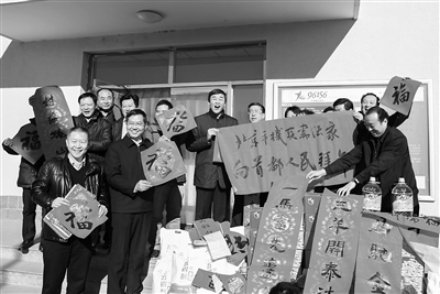临近春节,市直机关工委联合市市政市容委来到平谷区夏各庄镇王都庄村开展“送文化下乡”活动,为困难党员群众家庭送上了慰问品。机关书协的书法家们现场挥毫泼墨,为村民送上100多副春联和300多张“福”字。