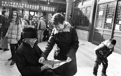 餐厅服务员、环卫职工、还有南锣鼓巷那些个性小店的“文艺”店主都陆续来到四合院,只为求得一副春联、一幅好字。