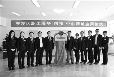 “职工服务中心还可以帮职工买火车票、飞机票?这可是工会方便职工的大好事啊,解决了我们节日回家买票难的问题,我们就更能踏实工作,再不用担心春节回家买票难的事了。”去年5月,在开发区职工服务(帮扶)中心新址落成仪式上,一职工感叹地说。