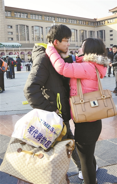 每年春运,在火车站都可以看到人们背着大包小包脚步匆匆。他们中有一家三口带着年货,脸上露出一种回家的渴望;他们中有恋人难舍难分,虽说过年后又可以相见,但此刻还是依依不舍!他们中有在京打工渴望回家却因为买不上车票而心急……