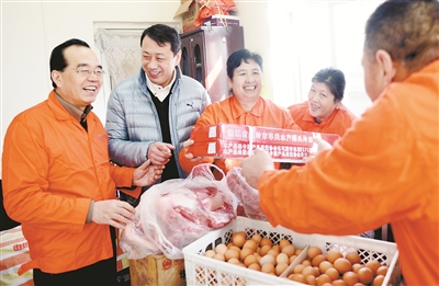 昨天,朝阳门街道总工会主席刘立东一行来到环连环保洁服务有限公司,看望慰问环卫一线职工,工会干部们带来了肉、蛋、鸡、鱼等年货,感谢大家多年来为首都清洁的市容环境做出的辛勤劳动。该公司大部分为外地员工,他们像往年一样今年春节仍然不能回家,员工们说:“节日期间北京的市容环境更需要我们,有工会组织和公司领导的关怀,我们在北京过年更有意义。”
