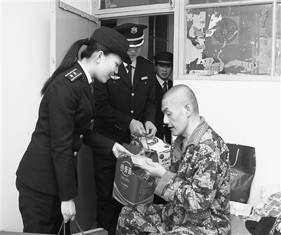 昨天,几个保安员来到低保户居民马成的家中,送来了迎春的对联和大米、食用油等慰问品。屋内顿时充满了喜庆的年味。石景山保安公司驻区政府保安分队1996年以来,先后和八角街道园北社区的赵海旺、赵秀红等7户困难居民结成帮扶对子。20年来,保安队员换了一拨又一拨,照顾帮扶对象却从未间断,他们用一颗颗爱心让受助者感受到社会的关爱和温暖。通讯员 胡京成 摄影报道